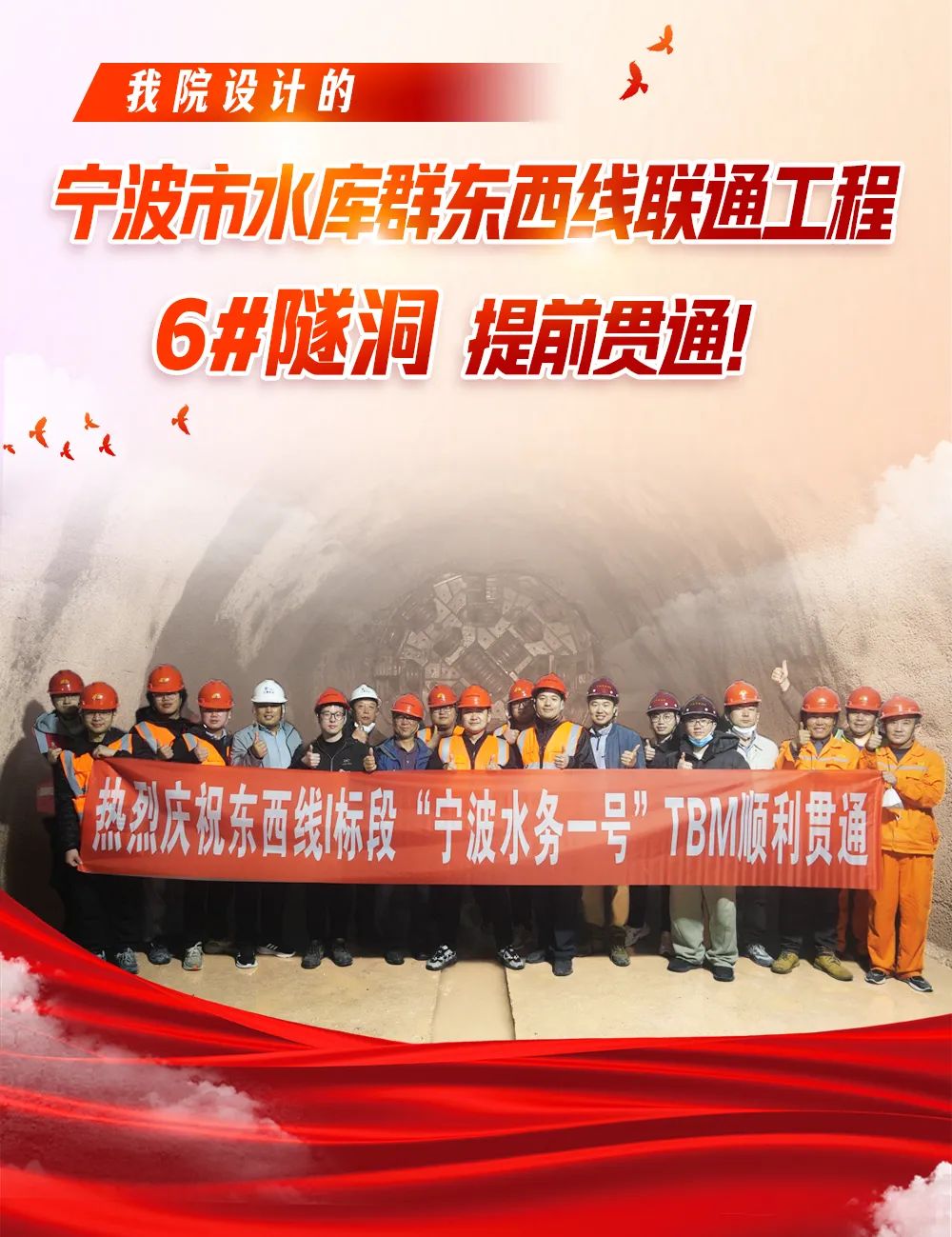 我院設(shè)計(jì)的寧波市水庫群東西線聯(lián)通工程6#隧洞提前貫通!