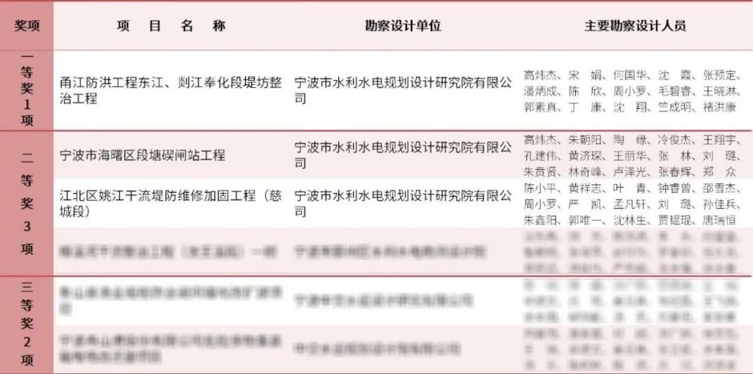 發(fā)布日期:2024.06.13 ? ? ? ?近日,2024年度寧波市優(yōu)秀勘察設(shè)計(jì)獎(jiǎng)評選結(jié)果公示完畢,我院設(shè)計(jì)的甬江防洪工程東江、剡江奉化段堤防整治工程、寧波市海曙區(qū)段塘碶閘站工程、江北區(qū)姚江干流堤防維...