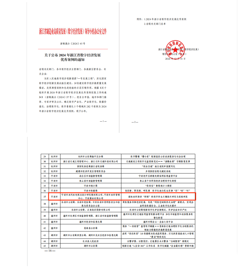 在產品創(chuàng)新方面,分別獲得第三屆寧波市專利創(chuàng)新大賽專利優(yōu)秀獎、“寧波市優(yōu)秀軟件產品”稱號、2024年“數(shù)據(jù)要素x”大賽浙江分賽獲優(yōu)勝獎,入選2024年度浙江省水利先進適用技術推廣指導目錄、2024年度寧波市優(yōu)質產品推薦目錄和2024年浙江省數(shù)字經(jīng)濟發(fā)展優(yōu)秀案例近20項。