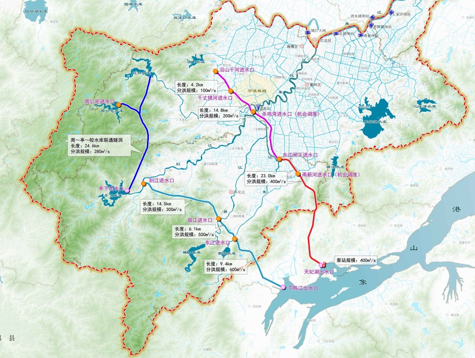 甬江流域南排通道工程項目建議書:該工程為《甬江流域防洪治澇規(guī)劃(2021-2035 年)》確定的甬江流域最大的分洪工程,工程擬設置東、西兩條分洪線路,總長約96.6公里,總規(guī)模1000立方米每秒。工程實施后,與規(guī)劃內工程聯(lián)合運用,將有效提升流域和區(qū)域防洪排澇能力。