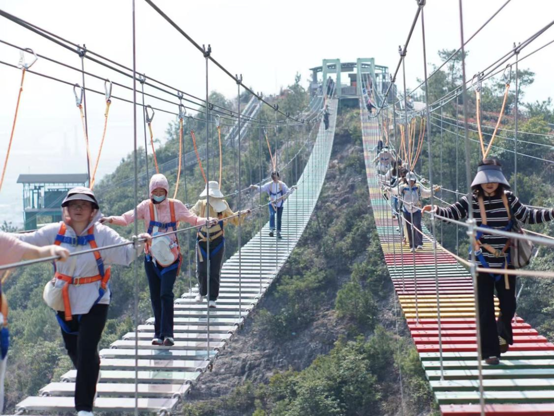 韶光爛漫,漫步尋春。午后,大家轉(zhuǎn)戰(zhàn)靈巖火山峰景區(qū),沿登山步道結(jié)伴而行,鍛煉身體之余,俯瞰浙東沿海罕見的火山口地貌遺跡。人花相映,山海相逢,既有虛空行走、高空滑翔的“挑戰(zhàn)派”,也有慢行賞景的“休閑黨”,共同享受山海交織的壯闊畫卷。