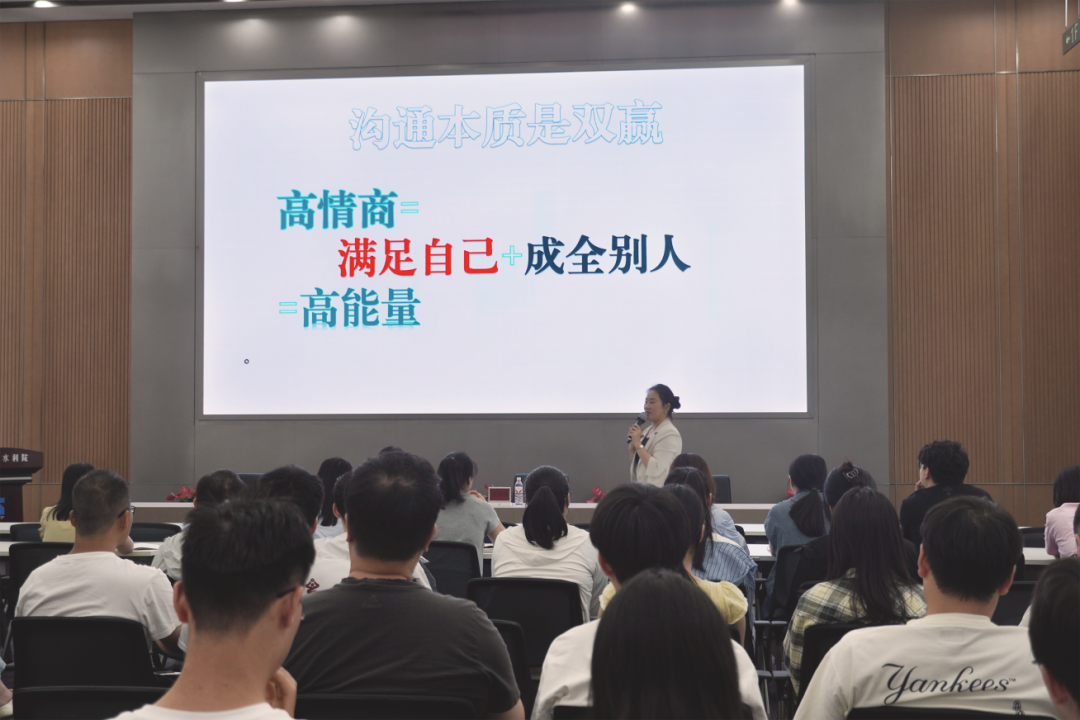 為提升員工的溝通能力與團(tuán)隊(duì)協(xié)作效率,2025年9月18日下午,我院工會(huì)在院一樓報(bào)告廳舉辦了一場(chǎng)主題為“從自我激勵(lì)到高效協(xié)同的溝通法則”專題講座。本次講座聚焦職場(chǎng)溝通,特邀禮儀專家、教育學(xué)碩士陳瑛擔(dān)任主講。我院各部門近70名員工積極參與,現(xiàn)場(chǎng)氣氛熱烈。