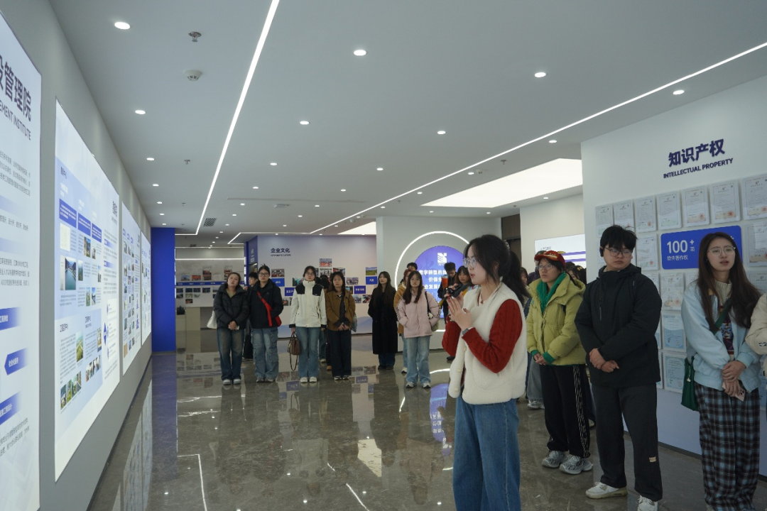 這場(chǎng)研學(xué)在水院展廳拉開序幕。在講解員的引導(dǎo)下,研學(xué)團(tuán)通過(guò)豐富的圖文資料,在展廳沉浸式了解我院的發(fā)展歷程、成果業(yè)績(jī)、企業(yè)文化,全方位感知我院在涉水產(chǎn)業(yè)、科技創(chuàng)新、團(tuán)隊(duì)建設(shè)等領(lǐng)域的綜合實(shí)力與發(fā)展成果。每一塊展板都在訴說(shuō)著寧波院人砥礪前行的故事,讓同學(xué)們對(duì)水利行業(yè)有了更直觀、更深刻的認(rèn)識(shí)。
