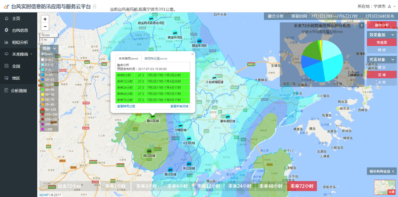 平臺以水行業(yè)對于氣象的需求而誕生的,匯集國內外主流氣象機構的數值預報,通過大數據、云計算、空間分析以及專業(yè)模型技術,實現(xiàn)天氣實況全掌握、未來降雨全面展現(xiàn)、分析簡報快速生成、預報降雨智能評估、數據大屏個性化定制,平臺不僅解決了未來降雨的時間分配,還解決了水利要素的時空分配,為防汛應急等相關提供科學的數據支撐,也為模型計算提供準確的邊界條件,提高結果精度。