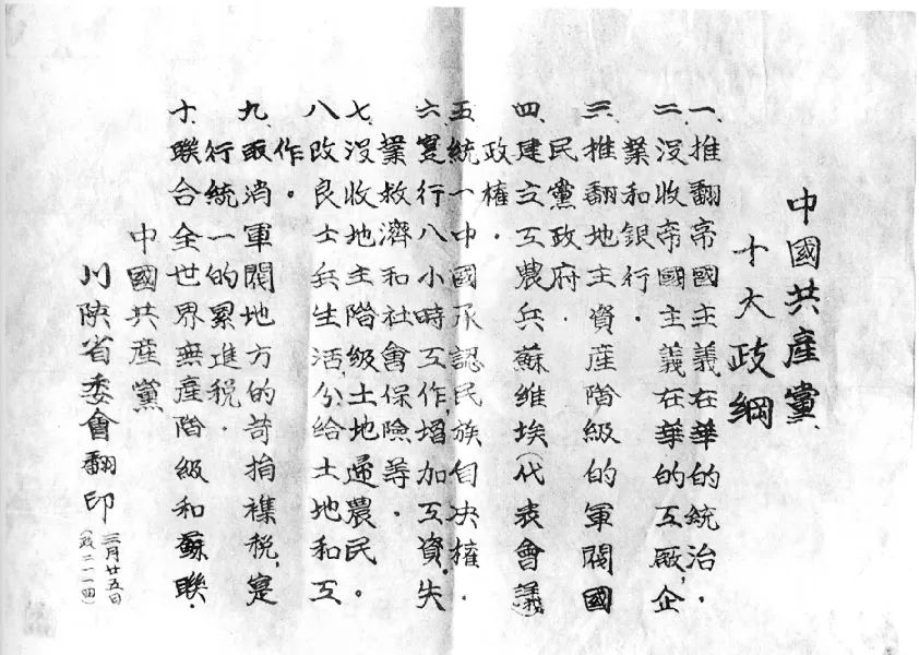 六大通過(guò)的政治決議案提出了中國(guó)革命的十大政綱: