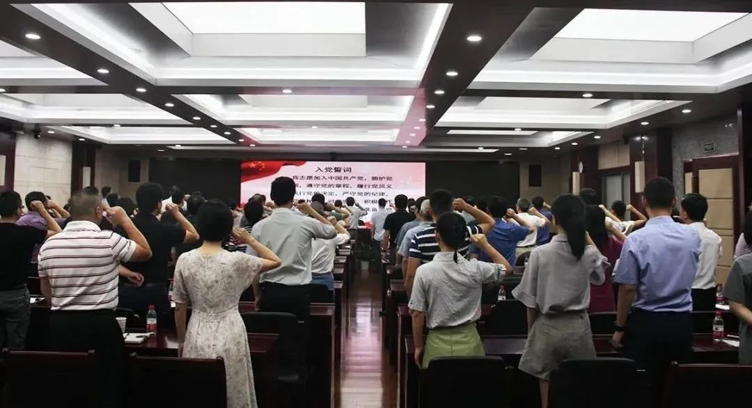 隨著雄壯激昂的《義勇軍進(jìn)行曲》歌聲響起,市水利局迎接建黨99周年紀(jì)念大會(huì)正式拉開帷幕。“我志愿加入中國(guó)共產(chǎn)黨……” 全體黨員昂首挺胸,高舉右手,一起重溫入黨的錚錚誓言。會(huì)議現(xiàn)場(chǎng),宣誓儀式氣氛莊嚴(yán)。