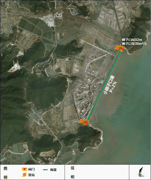 松岙鎮(zhèn)小獅子口區(qū)塊位于松岙鎮(zhèn)最東端,坐北朝南面海依山。本次小獅子口海塘安瀾工程主要包括拆除老閘新建獅子閘站和1.893公里海塘提標(biāo)加固工程。其中,閘站工程包括泵站設(shè)計流量為30m3/s,水閘規(guī)模為6孔×5.5m,凈寬33m;海塘工程包括小獅子口塘提標(biāo)加固至50年一遇標(biāo)準(zhǔn)。