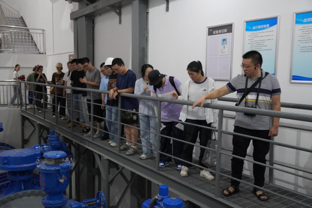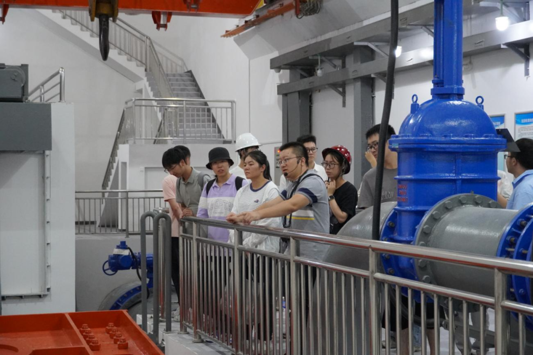 最后,研學(xué)隊伍來到北堤樞紐參觀。該工程榮獲中國建筑行業(yè)工程質(zhì)量的最高榮譽獎——2020-2021年度第一批中國建設(shè)工程魯班獎。胡經(jīng)理帶領(lǐng)研學(xué)隊伍依次進(jìn)入啟閉機房、觀景臺、控制室等處,現(xiàn)場講解工程設(shè)計思路、建造工藝和管理要點。