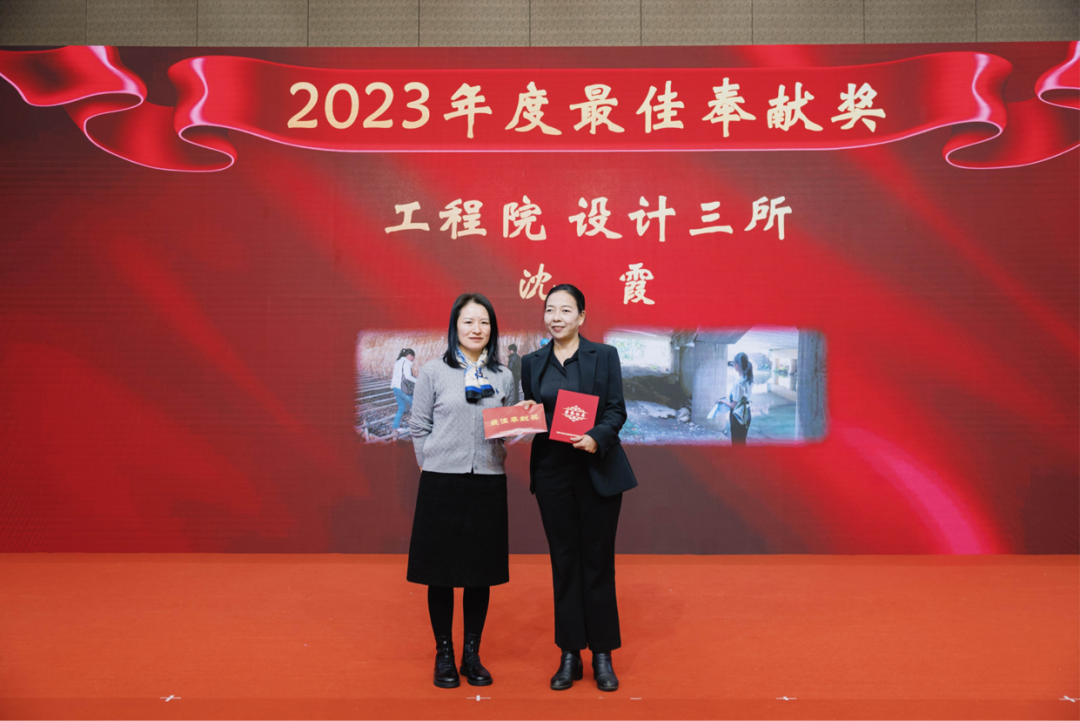 副院長(zhǎng)湯建輝、副院長(zhǎng)魏立峰、總規(guī)劃師張芳為2023年度最佳新人獎(jiǎng)?lì)C獎(jiǎng)