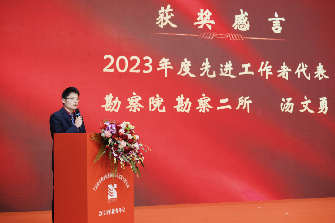 2023年度先進(jìn)工作者獲獎(jiǎng)代表勘察院勘察二所的湯文勇、2023年度最佳奉獻(xiàn)獎(jiǎng)獲獎(jiǎng)?wù)吖こ淘涸O(shè)計(jì)三所的沈霞、2023年度最佳新人獎(jiǎng)獲獎(jiǎng)代表規(guī)劃院規(guī)劃二所的魯經(jīng)宇,先后上臺(tái)發(fā)表獲獎(jiǎng)感言,以真摯的情感、質(zhì)樸的語言和滿滿的憧憬,表達(dá)了自己與企業(yè)共同成長(zhǎng)過程中的勵(lì)志故事和切身感悟,表達(dá)了寧波院中堅(jiān)力量、團(tuán)隊(duì)骨干和新兵后輩的豪情壯志。