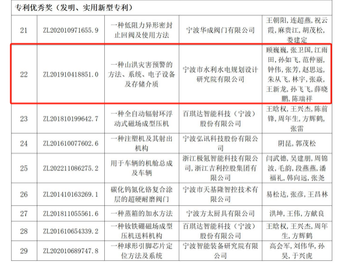近日,寧波市市場(chǎng)監(jiān)督管理局公布了第三屆寧波市專(zhuān)利創(chuàng)新大賽獲獎(jiǎng)項(xiàng)目名單,我院提交參賽的發(fā)明專(zhuān)利“一種山洪災(zāi)害預(yù)警的方法、系統(tǒng)、電子設(shè)備及存儲(chǔ)介質(zhì)”榜上有名,獲得本次大賽的“專(zhuān)利優(yōu)秀獎(jiǎng)(發(fā)明、實(shí)用新型專(zhuān)利)”。