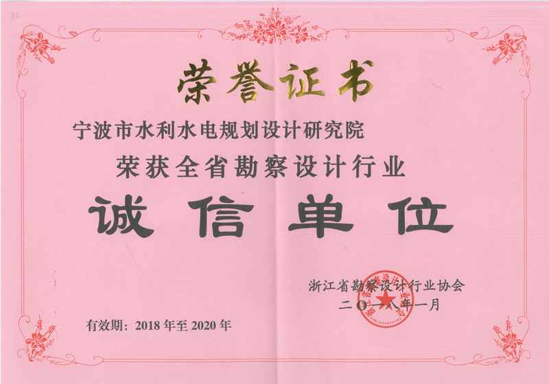 2018年度寧波市勘察市級行業(yè)優(yōu)秀誠信單位