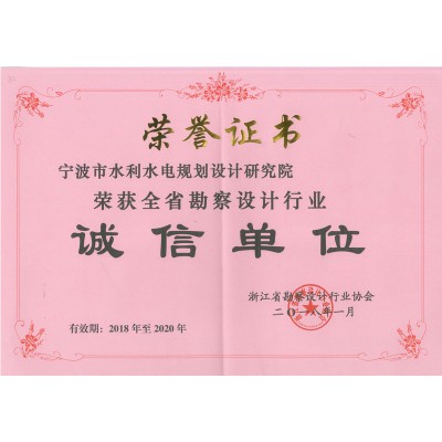 2018浙江省勘察設(shè)計行業(yè)誠信單位證書