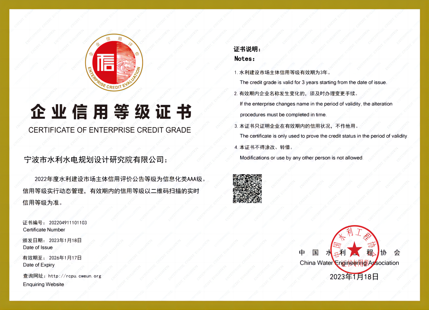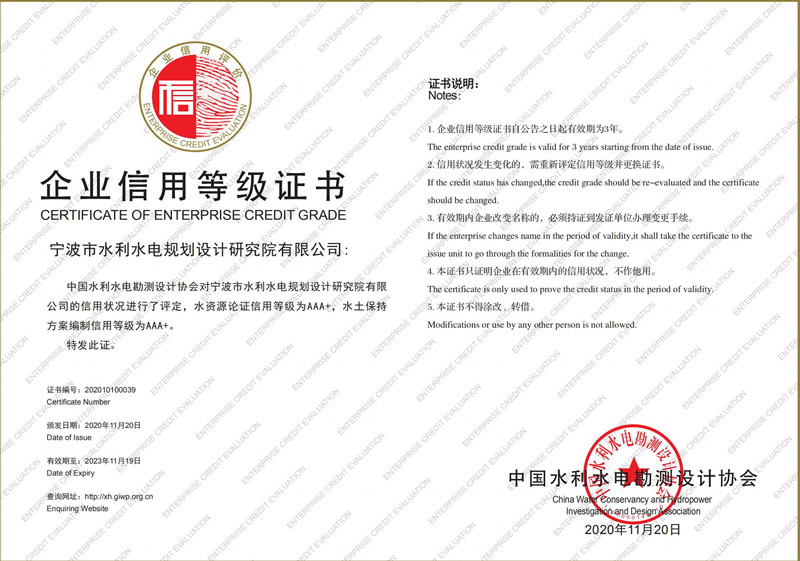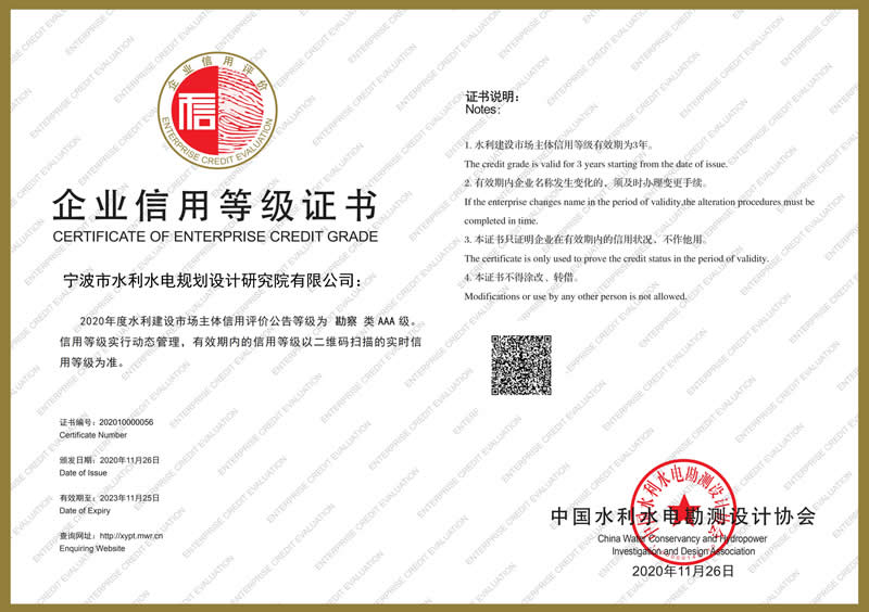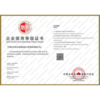 水利水電設(shè)計AAA級信用企業(yè)