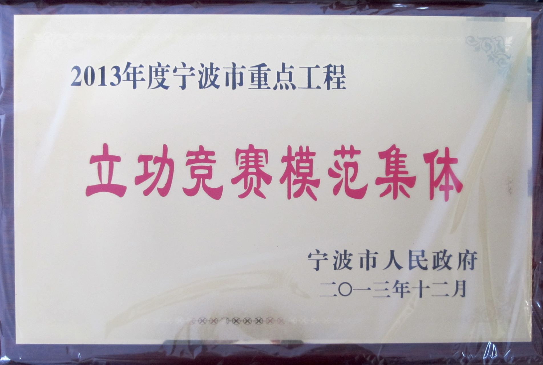 2013年寧波市重點工程立功競賽模范集體